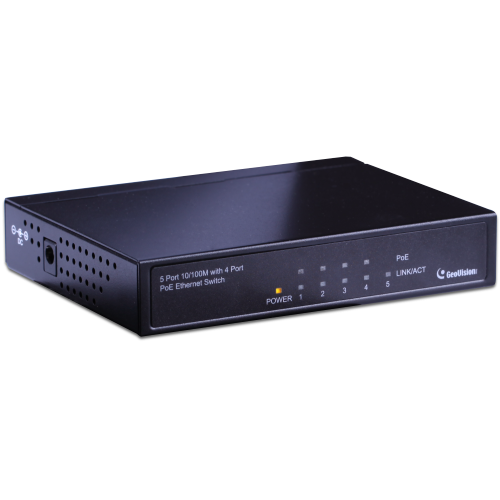 El GV-POE0400-V2 es un TX 10 / 100Base de 5 puertos con 4 puertos PSE / PoE Switch PoE Fast Ethernet de escritorio. El conmutador admite el estándar IEEE 802.3at Power over Ethernet, hasta 30 W por puerto y un consumo máximo de energía de 65 W por sistema, y no se requiere un cable de red especial para conectar sus dispositivos con alimentación (PD), como cámaras IP. El conmutador está diseñado para entornos de red pequeña para fortalecer su conexión y eficiencia de red.